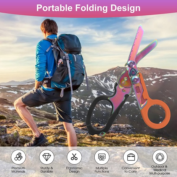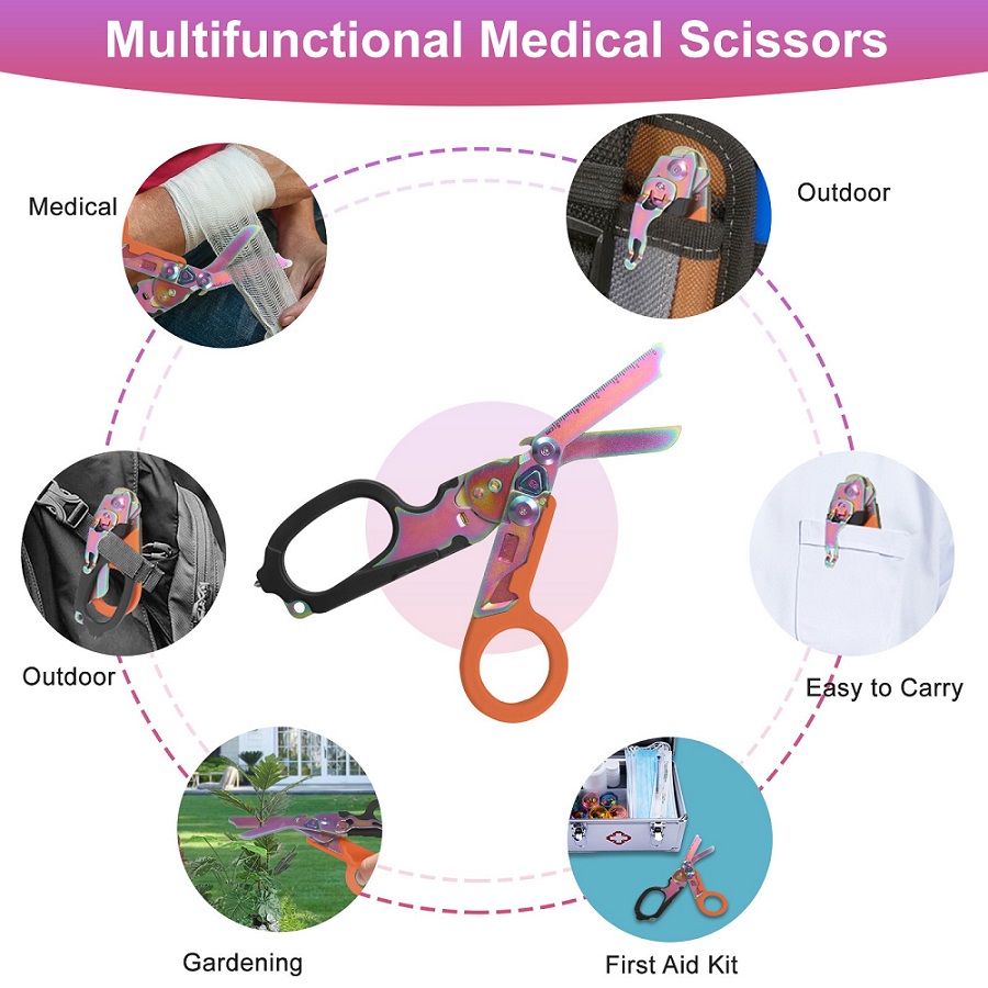 10 x 20,7 cm6-in-1-Multifunktions-Rettungswerkzeug: Multifunktionale medizinische Schere