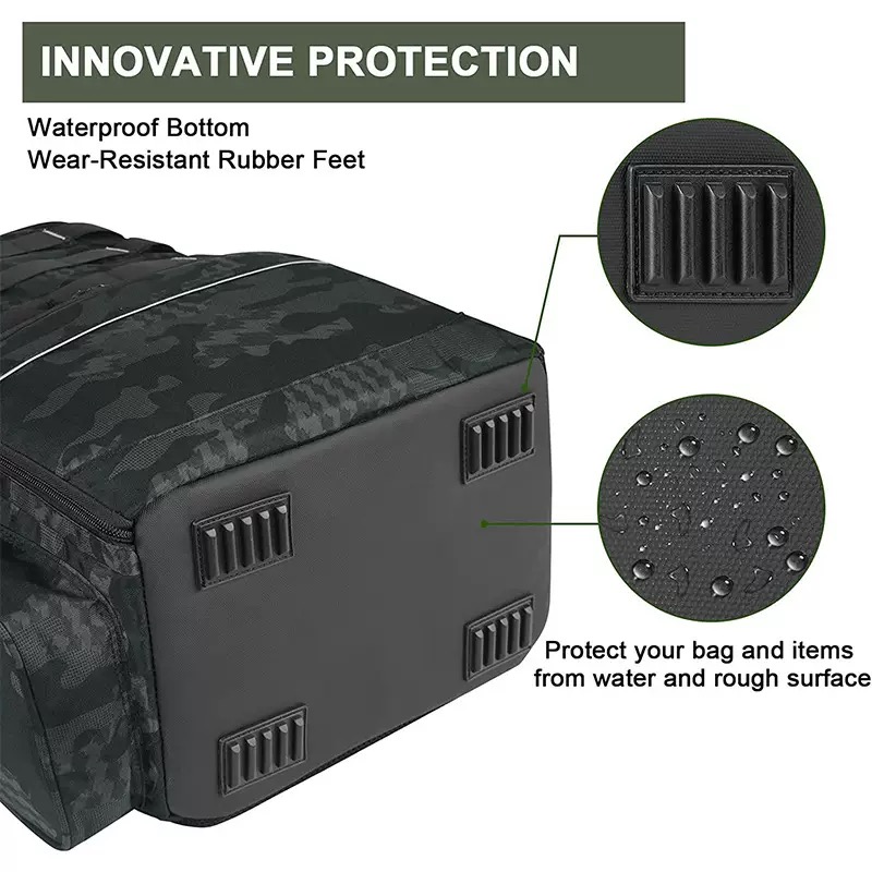 Der Angler Pro ist aus wasserdichtem und reißfestem Material gefertigt und sorgt dafür, dass Ihre Ausrüstung bei allen Wetterbedingungen geschützt bleibt. Zu den intelligent gestalteten Fächern gehören spezielle Fächer für Angelruten, mehrere Taschen für Angelboxen, eine isolierte Kühltasche für Köder oder Getränke und sogar eine versteckte wasserdichte Tasche für Ihr Telefon oder Ihre Schlüssel.